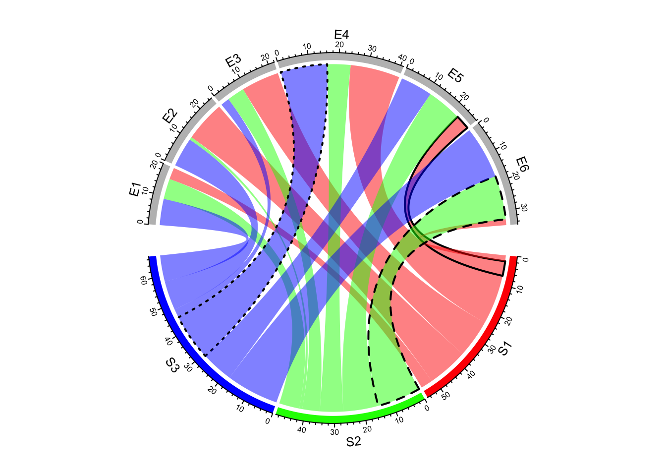 chordDiagram(mat, order = c("S2", "S1", "S3", "E4", "E1", "E5", "E2", "E6", "E3"))