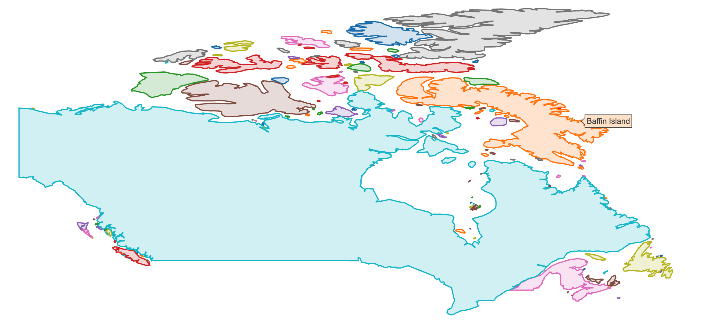 FIGURE 3.24: Using add_polygons() to make a map of Canada and major Canadian cities via data provided by the maps package.