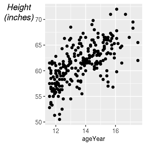 hw_plot <- ggplot(heightweight, aes(x = ageYear, y = heightIn)) +