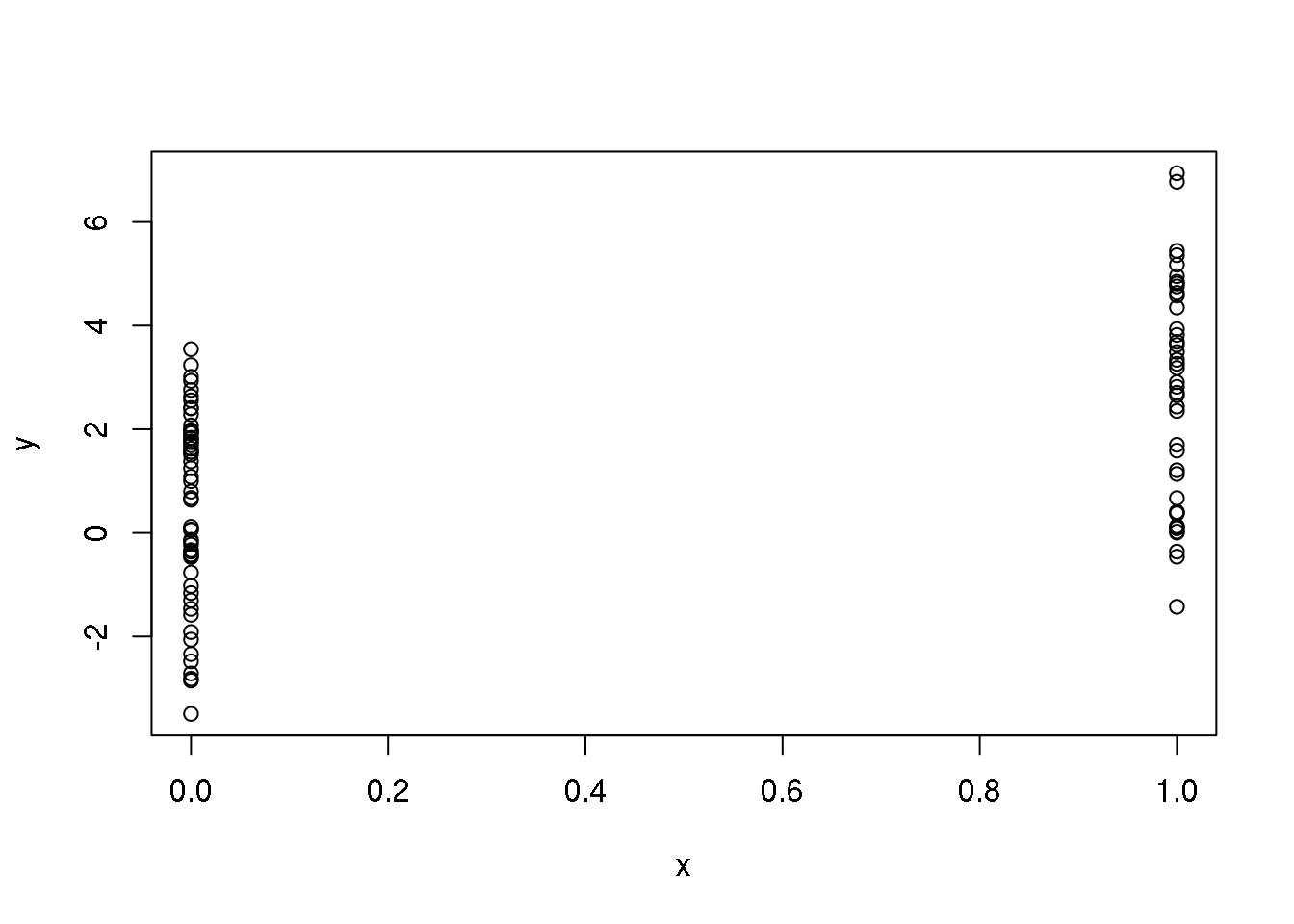 What if we wanted to simulate a predictor variable x that is binary instead of having a Normal distribution. We can use the rbinom() function to simulate binary random variables.